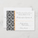 Cartão de RSVP em Damask Preto, Branco e Laranja