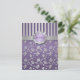 Cartão de RSVP Floral de Listras Roxo e Cinza