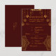 Complete o seu conjunto de papelaria de casamento com este cartão de RSVP marrom e dourado elegante. Com um fundo marrom rico acentuado por detalhes ornamentais dourados luxuosos, este cartão de resposta complementa perfeitamente temas de casamento tradicionais ou clássicos. Totalmente personalizável para respostas de convidados, controle de presença e preferências de refeição, garantindo estilo e funcionalidade.