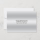 Este cartão de RSVP preto e branco simples e elegante tem uma borda com aparência prateada em torno da área de texto branca na frente e um verso silvertone com texto totalmente personalizável.