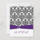 Cartão de RSVP Roxo, Preto e Branco com Damasco