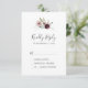 Este cartão de RSVP simples romance floral é perfeito para um casamento elegante. O design moderno rústico boho apresenta flores românticas aquareladas em tons suaves de burgundy, mauve, rosa beije e branco creme com folhas verdes.