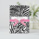 Cartões de resposta RSVP com laço zebra rosa. Personalize com sua escolha de estilo de fonte e cor da fonte, layout e redação.