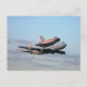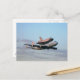 Cartão postal com uma fotografia do voo final do ônibus espacial Discovery no topo do 747 aviões de transporte do Kennedy Spcae Center.