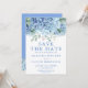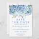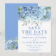 Cartão de Salvar a Data Azul Hortênsias Floral Cas