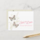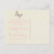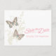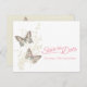 Lindo cartão postal de convite de casamento com arte gráfica de borboletas e redemoinho floral em rosa, azul turquesa, creme e marrom. Design de casamento moderno e elegante, parte do conjunto de papelaria de casamento com borboletas gráficas. Belas cores pastéis. Edite este cartão com seus nomes, data de casamento e outras palavras. Desenho e design exclusivos de Sarah Trett.
