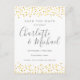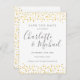 Com nomes de estilo de assinatura e confetes de corações dourados, este cartão elegante de salvar a data pode ser personalizado com as informações da sua data especial em letras cinzas elegantes. Criado por Thisisnotme©