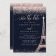 Cartão de Salvar a Data da Torre Eiffel de Paris em Rosa Dourado. Personalize este design personalizado com seus próprios detalhes.