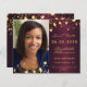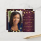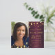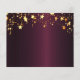Na frente: Adicione uma foto vertical. Uma cor de fundo gradiente burgundy elegante, decorada com estrelas douradas falsas. Personalize e adicione um nome e detalhes.