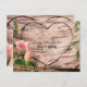 Cartão Postal de Salvar a Data de Árvore de Bétula com Rosas e Vinhas Cor-de-Rosa Rústicas.