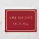 Cartões planos de salvar a data de casamento art déco dourado e vermelho do Grande Gatsby com texto personalizável