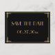 Cartões planos de salvar a data de casamento com arte deco do Grande Gatsby em dourado e preto com texto mutável