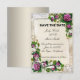 Lindas flores de hidrangea roxa com acabamento em renda. Este lindo cartão de salvar a data de casamento é uma maneira elegante de anunciar o seu grande dia. Personalize o cartão alterando o texto nos campos fornecidos. Você pode alterar o estilo da fonte, tamanho e cor.