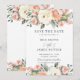 Este cartão chic de salvar a data do casamento apresenta uma bela composição floral em aquarela nas cores marfim, pêssego e rosa. Concebido para combinar com a nossa coleção de casamento Luxe. Personalize-o com os seus detalhes de forma fácil e rápida, basta pressionar o botão personalizar para reorganizar e formatar o estilo e a colocação do texto. (c) The Happy Cat Studio