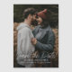 Este anúncio de salvar a data de casamento simples, elegante e moderno com foto apresenta um cartão de salvar a data branco com roteiro escrito à mão, detalhes de texto personalizáveis mínimos e foto na frente. O verso é magnético. Clique no botão de editar para personalizar este design para atender às suas necessidades.