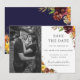 Destaque sua foto pré-casamento com este cartão de salvar a data com foto boho chic. Com uma bela grinalda de floral em aquarela borgonha, amarelo, laranja queimada e folhagem verde. Personalize-o com seus detalhes fácil e rapidamente, basta pressionar o botão personalizar para reorganizar e formatar o estilo e a colocação do texto.
