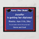 Aqui está um maravilhoso Cartão de Salvar a Data para Formaturas e festas e celebrações de formatura. Deixe que seus convidados Salvem a Data para essa ocasião especial. Ótimo para formaturas de faculdade, universidade, ensino médio, ensino fundamental, ensino fundamental II, escola técnica, faculdade de medicina, escola de culinária, escola de aviação, etc