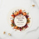 Celebre o seu próximo casamento com um estilo outonal aconchegante com este cartão circular rústico de Save the Date. Com destaque para abóboras vibrantes em aquarela, folhas de outono, frutos e bolotas em tons quentes da estação, este design captura perfeitamente o charme de uma colheita de outono. O layout circular emoldura os detalhes do seu casamento no centro, tornando-o elegante e memorável. Ideal para casamentos rústicos, celebrações em celeiros e festas de jardim de outono. Uma escolha linda para casais que amam as cores ricas e a beleza natural do outono.
