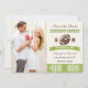 A noiva e o noivo que amam assistir ou jogar futebol vão adorar esses cartões de "save the dates" para casamento temático de futebol, com início de partida fofo e esportivo, com uma linha de 50 jardas de um campo de futebol e um fundo listrado sutil em creme e branco, design de futebol e faixa que pode ser personalizado com sua mensagem especial para amigos e familiares no verso e personalizado com iniciais monogramadas em fonte estilo jersey do casal feliz. Arte © Chrissy H. Studios, LLC. Todos os Direitos Reservados.