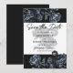 Cartão de Salvar a Data do Casamento Floral Azul Escuro e Sombrio