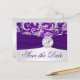 Cartão de Salvar a Data em Damasko Roxo e Prata