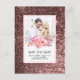 Cartão de salvar a data em rosa com flores e brilh