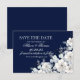 Cartão de salvar a data flor branca sakura azul-marinho