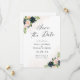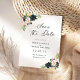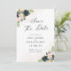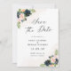 Cartão de Salvar a Data Floral Rosa e Azul Marinho