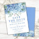 Cartão de Salvar a Data Flores de Hortênsias Azuis