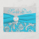 Cartão de Salvar a Data Turquesa e Prata com Monog