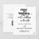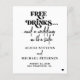 Cartão de salvar data de casamento informal simples preto e branco com tipografia negrito retrô moderno e a frase casual engraçada "bebidas grátis e um casamento de lado" com tipografia moderna.