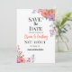 Celebre seu dia especial com este elegante cartão de save the date floral, apresentando flores laranja e roxas em aquarela. Perfeito para anúncios de casamento em qualquer estação, este modelo personalizável de save the date de casamento foi projetado para impressionar seus convidados com seu visual romântico, moderno e atemporal.