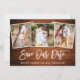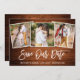Cartão de Anúncio de Noivado de Madeira Rústica Casal Script Pincel Moderno com 3 Fotos