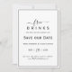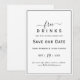 Adicione humor ao seu anúncio com este cartão de Salve a Data “Bebidas Grátis” minimalista. Perfeito para casamentos descontraídos, divertidos ou modernos — design limpo com um toque lúdico para deixar seus convidados animados.