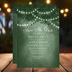Anuncie seu dia especial com este Cartão de Salve o Dia com Luzes de Stringueira de Árvore Rústica Verde. Com uma encantadora árvore verde rústica iluminada por luzes de stringueira sonhadoras, este cartão define um tom romântico e caprichoso para o seu casamento. Perfeito para cerimônias ao ar livre e à noite, captura a beleza da natureza e adiciona um toque etéreo ao seu anúncio. Personalize-o com seus detalhes para criar um salve o dia memorável.