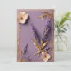 Um cartão de saudação de casamento lindamente trabalhado, adornado com delicados padrões florais em cores pastel macio. A frente apresenta uma elegante ilustração de anéis de casamento entrelaçados com um toque sutil de folha de ouro, simbolizando o eterno laço do casamento. Acima dos anéis, na caligrafia graciosa, está a frase "Parabéns no seu Dia de Casamento."