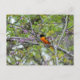 Um homem Baltimore Oriole sentado na minha árvore de rebentos. O pássaro recebeu seu nome da semelhança das cores masculinas com as do casaco de armas de Lord Baltimore.