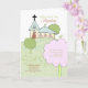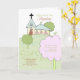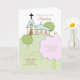 Um bonito cartão de batismo com pequenas árvores de igreja/cappel e flores