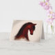 Ilustração artística de uma égua de baía num fundo pastel bonito. Este cartão pode ser personalizado.