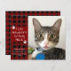 Um cartão de saudação de fotos divertidas e amigável de Natal para amantes de gatos impresso em papel semisglosso leve de 4,5x5,6 polegadas em vez de estoque de papelão com uma foto de seu gato ou gatinho e o engraçado ditado: A PEQUENA PESADA, MAS MUITO NICE e um padrão de xadrez vermelho e preto de búfalo, estampas de gatos e mãos tipografia com sua saudação personalizada (a amostra mostra FELIZES FÉRIOS). Ideal para orçamentos conservadores e/ou entrega manual a familiares e amigos. ADICIONE ENVELOPES na página de ordenação, se desejar. ASSISTÊNCIA: Para obter ajuda com a modificação ou personalização do design, a alteração de saudação, a alteração de cor, o redimensionamento ou a transferência do design para outro produto, entre em contato com o designer ANTES DE ENCOMENDAR, através da guia MENSAGEM de Bate-papo Zazzle abaixo ou envie um e-mail para makeitaboutyoustore@gmail.com.