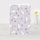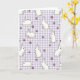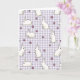 Concebido com um padrão repetitivo de coelhinhos brancos e roliços 🐰, este cartão apresenta contornos simples que tornam cada rostinho uma sensação acessível e doce. O fundo é uma xadrezinho gingham de cor lavanda-claro e branco que define uma cena calma e pronta para a primavera. Os coelhinhos aparecem em uma mistura de poses - deitados juntos, sentados eretos como se estivessem ouvindo e em pé sobre as patas traseiras com uma inclinação curiosa que sugere atenção amigável. Detalhes suaves adicionam calor: sombreamento amarelo-claro sob seus corpos e rosa suave em seus narizes e orelhas internas, como um rubor tímido compartilhado entre companheiros. Pequenas flores de quatro pétalas 🌷 são espalhadas entre eles, coloridas de roxo com centros amarelos brilhantes para quebrar o padrão. Qualquer texto de saudação pode se sentar perfeitamente ao longo da parte superior ou inferior em um roxo médio que combina com as flores, permanecendo fácil de ler contra os quadriculados pálidos. O layout geral parece aconchegante e afetuoso pela maneira como os coelhinhos se agrupam e se enfrent