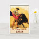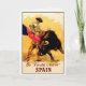 Cartão de saudação com poster de tourada vintage da Espanha. Orgulhoso matador em lutas ferozes com o touro selvagem. Alteramos e adicionamos texto e cores, assim como tamanho e posicionamento, tudo quando solicitado. Contacte-nos com as suas necessidades únicas e fazemos o resto!