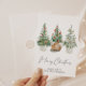 Cartão de Natal elegante com árvores de aquarela com ornamentos. Encontre itens correspondentes no meu compro ou entre em contato comigo.