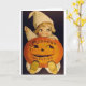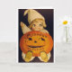 Cartão de Vintage / Retro Halloween. Fantasma adorável com um gigante jack-o-lanterno! Hallowe'en Saudação!