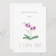 cartão de saudação floral feminina para todas as ocasiões em que as flores orquídeas roxas de cor aquosa