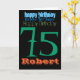 Cartão de saudação de 75 anos personalizável com grande número de esmeraldas (com letras no estilo de 50) e nome em laranja. Perfeito para ele. Você pode facilmente alterar o texto (cor, fonte, tamanho e posição) clicando no botão personalizar.