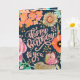 Linda mão pintou cor-de-rosa laranja e flores vermelhas em um fundo de cinza escura com letras de mão em rosa. Arte original de Caroline Bonne Müller