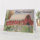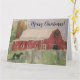 Cartão de cartões de natal de Natal com celeiro vermelho e cavalo desejando um país no ano novo - personalize seu estilo e nome personalizado e detalhes com memorável pintura de fazenda impressionista da artista rural Sophie Dare.