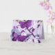 Design original criado com uma ilustração da safra com borboletas roxas sobre um galho de folhas e um padrão floral roxo claro.