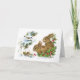 Coelhos de ilustração venenosos na neve com cones de sopa, pinheiro e pinheiro, e um pássaro.